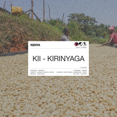• Path KENYA KII - KIRINYAGA PROCESS - WASHED RHUBARB - AROMA VARIETY - BATIAN, SL28/34, RUIRU CURRANT, CANE SUGAR, TANGERINE - TASTE REGION - KIRINYAGA TEA-LIKE - TEXTURE