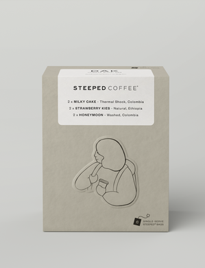 Dak Coffee Bags STEEPED COFFEE® 2 x MILKY CAKE - Thermal Shock, Colombia 2 x STRAWBERRY KIES - Natural, Ethiopia 2 x HONEYMOON - Washed, Colombia