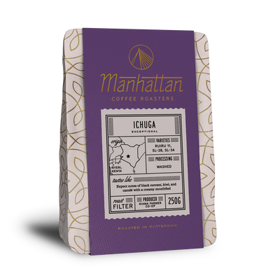 Manhattan ICHUGA VARIETIES RUIRU 11, SL-28, SL-34 WASHED KENYAN tastes like Expect notes of black currant, kiwi, and canelé with a creamy mouthfeel KIAMA FARMER